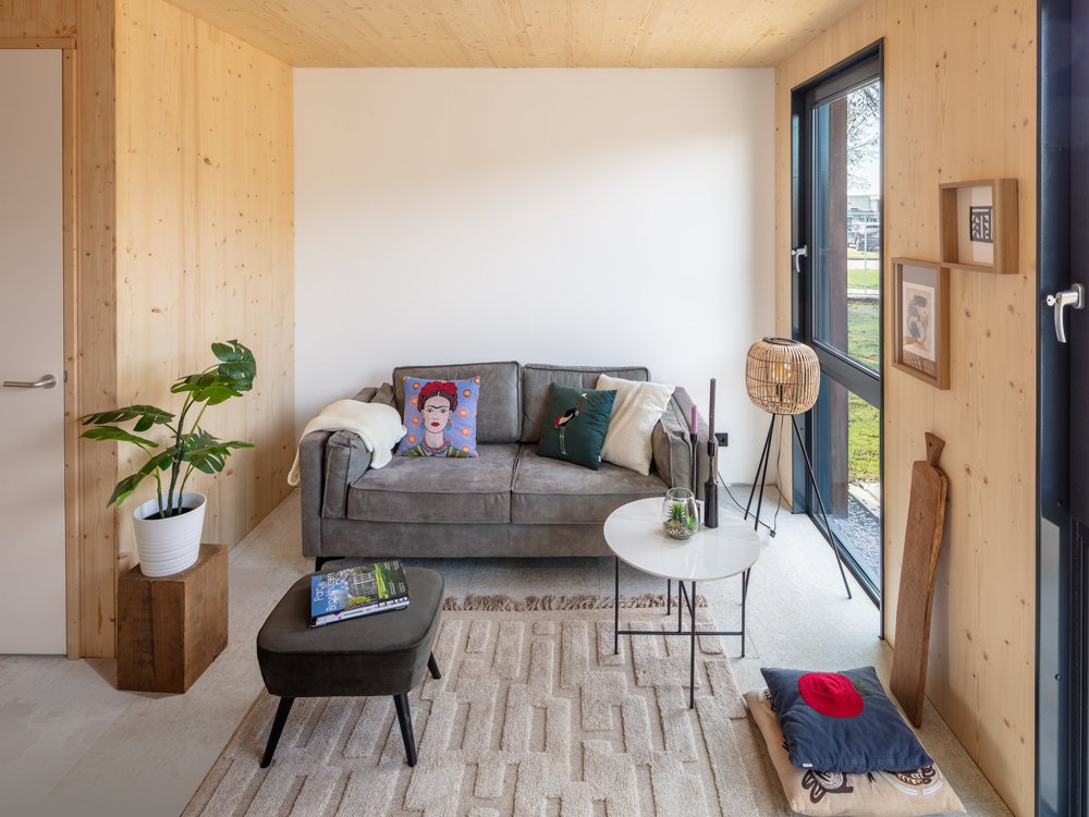 Met biobased constructie (CLT), isolatie en gevel, voor een bijzonder kleine voetafdruk nu en een leefbaar klimaat in de toekomst. Plus klimaatadaptieve en natuurinclusieve maatregelen, inspelend op een extremer klimaat en natuurbehoud. Vanuit een circulair droogbouwsysteem, voor bijna volledig hergebruik in de verre toekomst. Snel en betaalbaar in onze fabriek volledig afgebouwd en optioneel stikstofvrij geplaatst, met minimale impact op locatie.